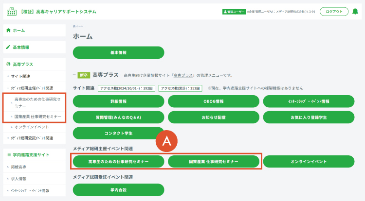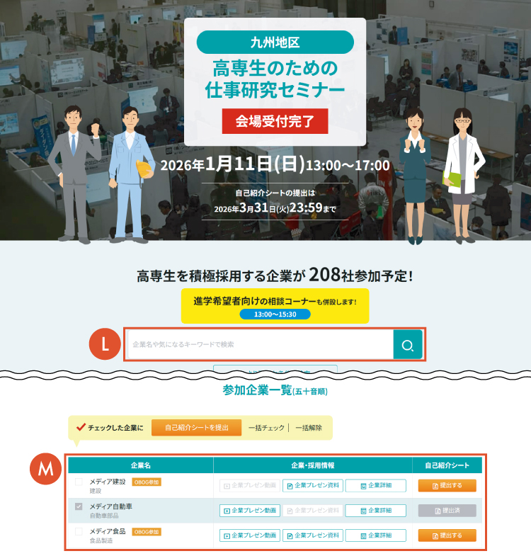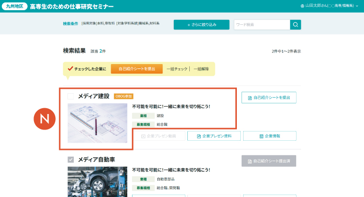 メディア総研主催「高専生のための仕事研究セミナー」および「国策産業 仕事研究セミナー」出展に関する機能を使用する