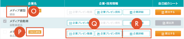 - 学生が訪問した企業ブースに掲示されている「二次元バーコード」を読み取り、自己紹介シートを提出した場合に【○】が表示されます。